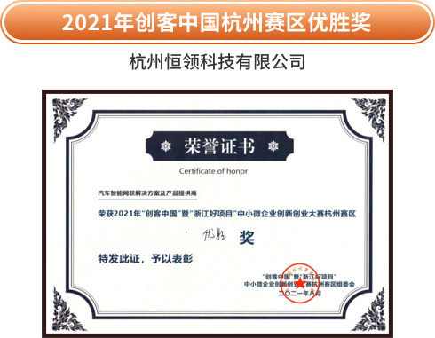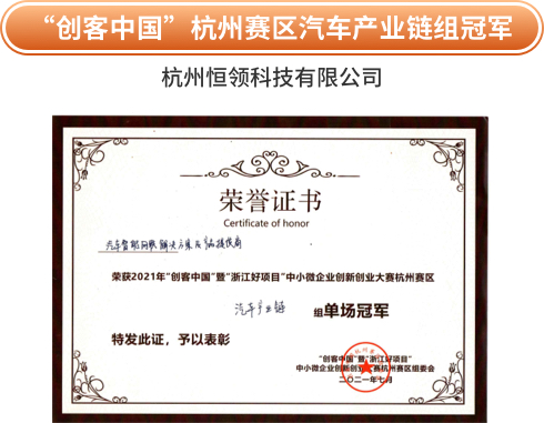 2.市級先進——2021年創客中國杭州賽區優勝獎、“創客中國”杭州賽區汽車產業鏈組冠軍